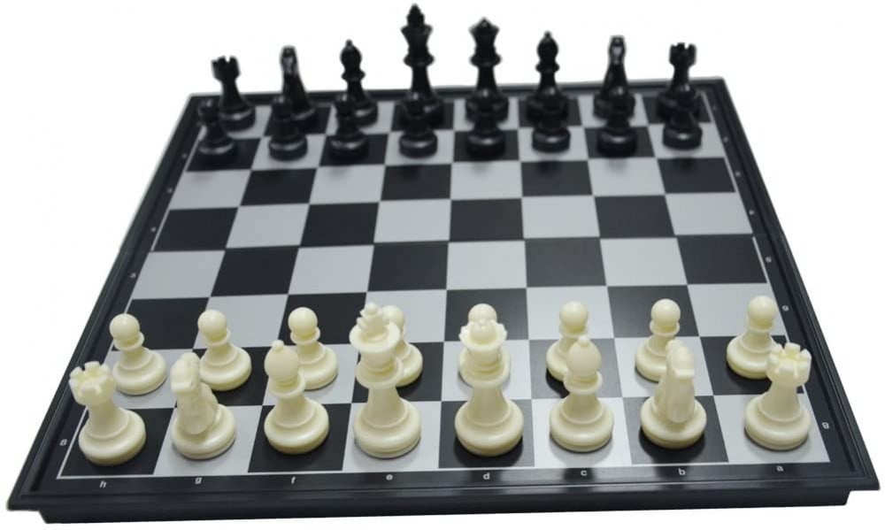 شطرنج مغناطيس متوسط الحجم باللون الابيض و الاسود